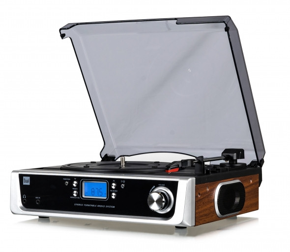 Класичний грамофон в стилі ретро неймовірно задоволення для любителів звуку вінілових платівок.Ще однією перевагою є вбудований FM - радіо тюнер , так що ви будете слухати улюблену радіостанцію. Для відтворення музики вам не потрібен зовнішній звук, програвач має вбудований стереодинаміки , а також дозволяє слухати музику через навушники вихід мініджек. Сам поворотний стіл також може бути з'єднаний з вежею або підсилювача через лінійний вихід.